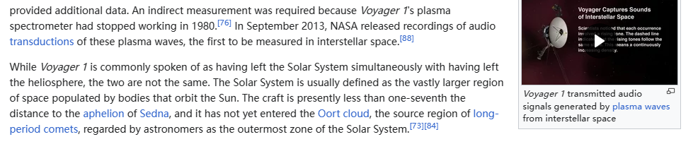 但是因为真的没电加之老化,旅行者1号的太阳风探测器本身已经在1990年坏了,现在旅行者1号的太阳风测量数据是靠还在工作的仪器的数据间接推出的。